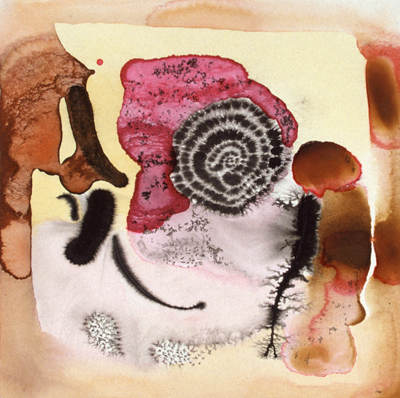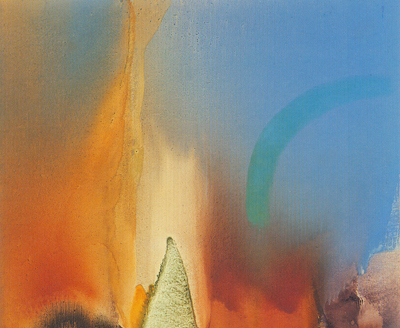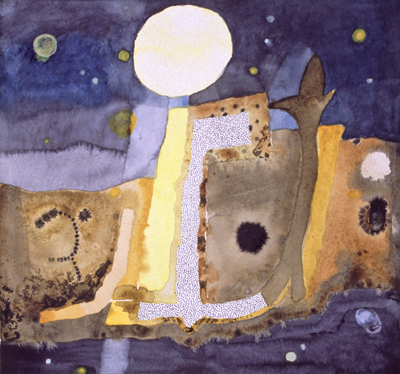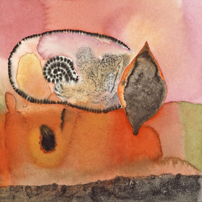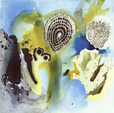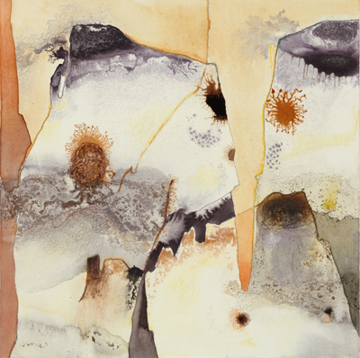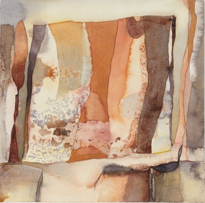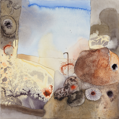 These small watercolours were painted in a studio overlooking the Pittwater, Sydney, in the Ku-ring-gai Chase National Park. The Aboriginal sites, scribble-bark eucalypts, fire-ravaged grass-trees and geological strata, together with imaginative notions of primeval beginnings inform these works, and the large oils painted in her London studio.